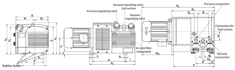 Republic offers the DVT series of dry-running rotary vane combination pumps and are ideally suited for oil free applications. They are single stage, air-cooled and direct driven for continuous operation. These rugged pumps are simple to install and easy to service and maintain. The smaller pumps come with a motor integrated, while the larger pumps are available with or without motor. These pumps have a displacement ranging from 9 to 95 CFM (16 to 164 m3/hr), a maximum vacuum of 17.7 in. Hg and maximum pressure of 8.7 psig.