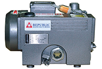 | Shipping | Tax | Terms Shopping Cart 0 Items Request for Quote 0 Items All Categories > Vacuum Pumps, Blowers & Parts > Vacuum Pumps & Blowers > Republic Manufacturing Pumps > Oil Lubricated Rotary Vane Vacuum Pumps > Item # RX-10 Download PDF Download PDF Printable Page Email This Page Save To Favorites Please wait… Item # RX-10, 14.41 Inch (in) Dimension A Oil Lubricated Rotary Vane Vacuum Pump Web Price QUOTE Republic offers the RX series of oil lubricated rotary vane vacuum pumps. They are single stage, air-cooled, and direct driven for continuous operation. The design is one of the most reliable and simplest vacuum pumps available. These rugged pumps are simple to install and easy to service and maintain. They are available with or without motor to meet your application needs. These vacuum pumps have a displacement range from 6 to 490 CFM (10 to 833 m³/h) and maximum vacuum of 0.5 torr. larger image larger image Financing · Specifications · Dimensions · Optional Accessories · Additional Information Financing Approve Payments Finance with Approve Payments Specifications Model RX-10 Phase 3 Displacement at 50 Hertz (Hz) Frequency 10 m³/h6 ft³/min Displacement at 60 Hertz (Hz) Frequency 13 m³/h8 ft³/min Maximum Ultimate Vacuum 29.3 inHg15 Torr20 mbar Motor Output at 50 Hertz (Hz) Frequency 0.37 kW Motor Output at 60 Hertz (Hz) Frequency 0.45 hp Motor Speed at 50 Hertz (Hz) Frequency 1500 rpm Motor Speed at 60 Hertz (Hz) Frequency 1800 rpm Voltage at 50 Hertz (Hz) Frequency 220 V380 V Voltage at 60 Hertz (Hz) Frequency 230 V460 V Noise Level at 50 Hertz (Hz) Frequency 53 dB Noise Level at 60 Hertz (Hz) Frequency 52 dB Weight 53 lb24 kg Fill Oil 0.8 L0.8 qt Inlet Port Size 3/4 in Inlet Port Type National Pipe Thread (NPT) Certifications Canadian Underwriters Laboratories (cUL) European Conformity (CE) German Motor Vehicle Inspection Association (DEKRA) International Efficiency Class 3 (IE3) Dimensions Dimension A 14.41 in366 mm Dimension B 11.02 in280 mm Dimension C 10.43 in265 mm Dimension D 7.09 in180 mm Dimension E 5.08 in129 mm Dimension F 1.57 in40 mm Diameter H 1.18 in30 mm Optional Accessories Inlet filterInlet check valveVacuum gaugeMotor starterControl panelPLC Additional Information The RX series is used in a variety of industries such as meat packaging, food processing, thermoforming, composites, medical, laboratory, vacuum cooling, robotics, degassing, and autoclaves. MORE IMAGES · 14.41 Inch (in) Dimension A Oil Lubricated Rotary Vane Vacuum Pump - 3 DOWNLOADS Brochure for 14.41 Inch (in) Dimension A Oil Lubricated Rotary Vane Vacuum Pump (PDF, 503KB) Maintain Your Air Compressor Learn more about maintaining your air compressor by downloading our eBook on air compressor maintenance. Download eBook