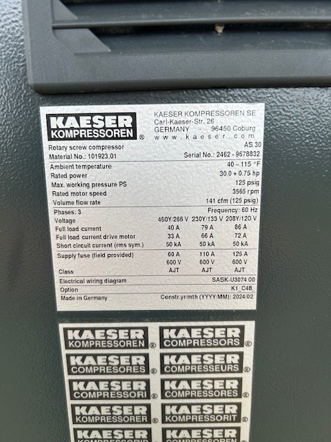 Our Used Kaeser air compressors are evaluated and fully serviced by our certified technicians. Since Keaser compressors are "Built for a Lifetime" you will be guaranteed a quality compressor. The service friendly, rugged reliability, and guaranteed efficiency is certain to provide energy cost savings.